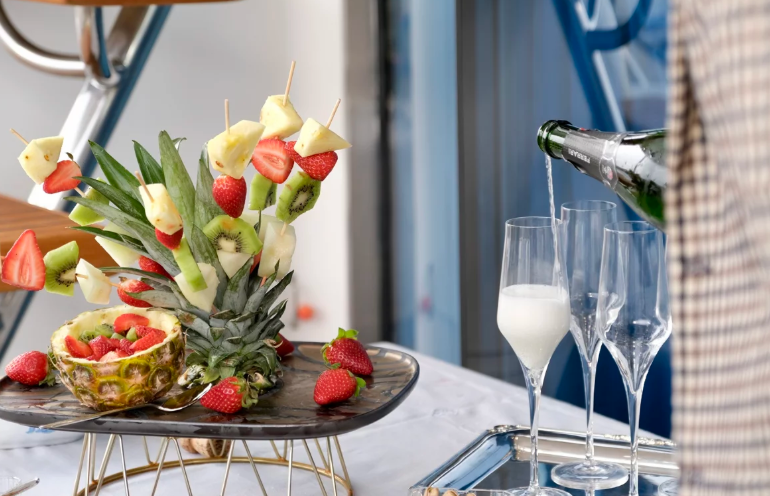 - Wine and champagne list: a list of white and red wines, both local and national, is also available.