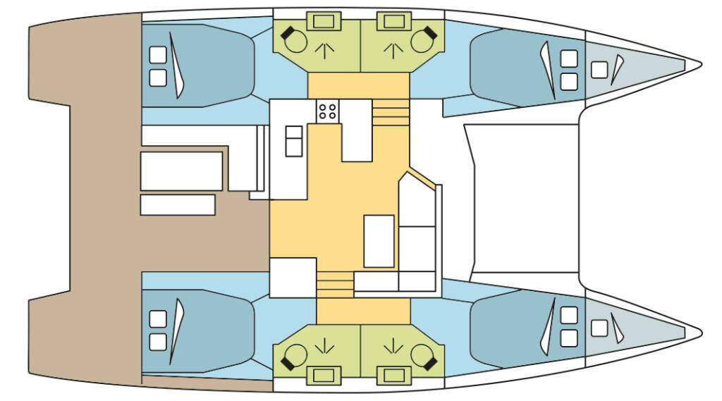 (for charters up to max 3 guests, one person works as a skipper and cook) + provisioning, Crew on board must have their own toilets/ showers. If either a skipper or a hostess/cook is on board, 1 double cabin will be required for him/her. If both a skipper and a hostess/cook are on board, 1 double cabin and 1 forepeak cabin will be required for them. Exceptions exists for specific layouts, Sales Agents will provide more details about the different boat models - Payable now