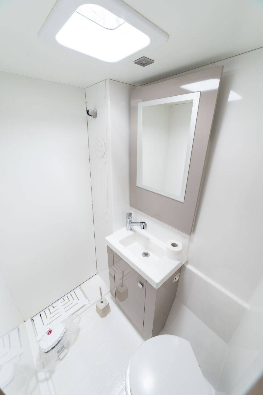 if skipper and/or cook hired & sleeping in forepeak, please note that on this boat, their access to a toilet & shower will be through client's cabin if guests are using all double cabin