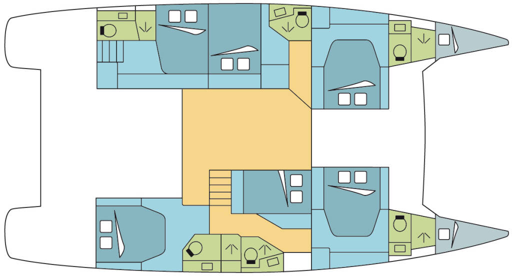+ provisioning, Crew on board must have their own toilets/ showers. If either a skipper or a hostess/cook is on board, 1 double cabin will be required for him/her. If both a skipper and a hostess/cook are on board, 1 double cabin and 1 forepeak cabin will be required for them. Exceptions exists for specific layouts, Sales Agents will provide more details about the different boat models - Payable now