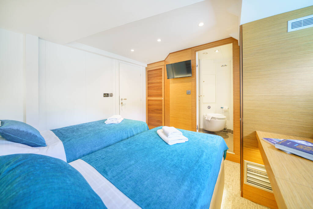 Includes: Accommodation for a maximum of 12 guests in 6 cabins, a crew of 4 and their expenses, insurance of the yacht, fuel for 4 h of engine work daily, generator work 24/7, fuel for tender transfers to/from the vessel, the use of recreational equipment, tourist taxes, Wi-Fi, VAT of 13%.