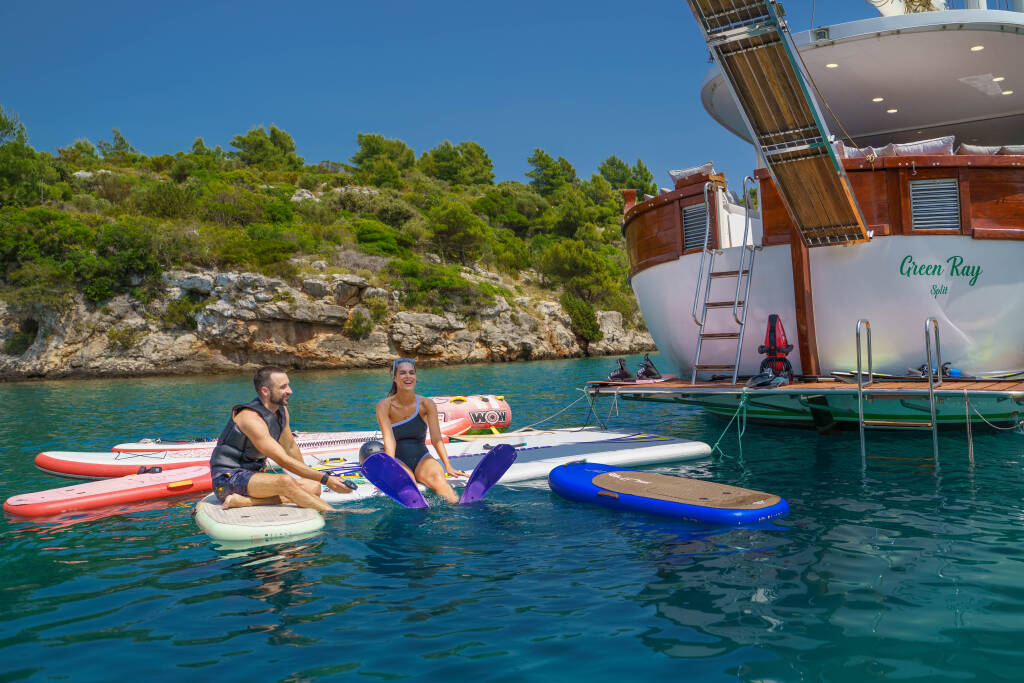 Gulet & Motorsailer Green Ray Green Ray, built in 2019 is anchored in the Split Harbour, Split region, Croatia. It has 6 cabins, can accommodate 12 people and has 6 toilets.
