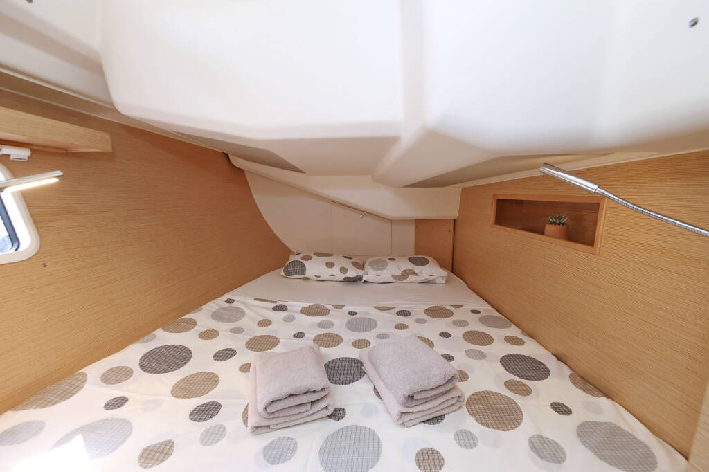 Sailing yacht Hanse 458 Tortuga, built in 2025 is anchored in the Sukosan, D-Marin Dalmacija Marina, Zadar region, Croatia. It has 3 cabins, can accommodate 6 + 2 people and has 2 toilets.