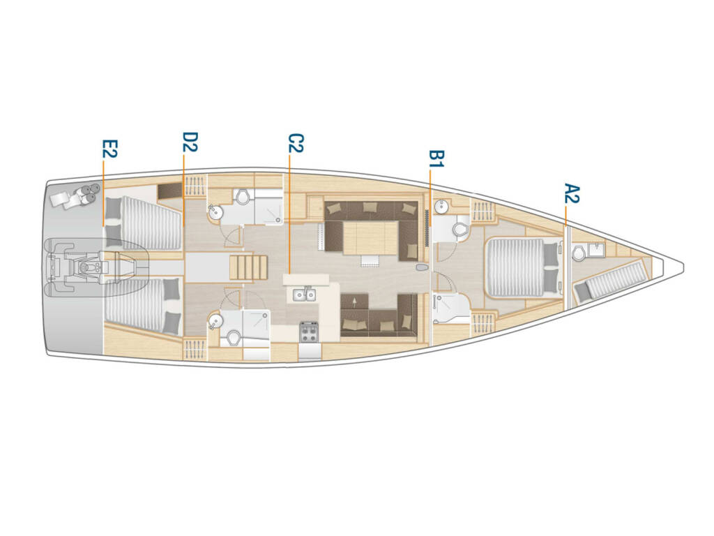 Sailing yacht Hanse 588 Oceanelle, built in 2024 is anchored in the Trogir, Yachtclub Seget (Marina Baotić), Split region, Croatia. It has 3 + 1 cabins, can accommodate 6 + 2 + 1 people and has 3 + 1 toilets.