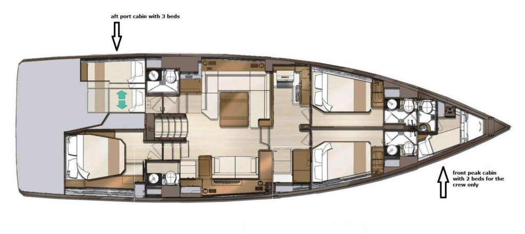 Sailing yacht Jeanneau 60 Euphoria, built in 2021 is anchored in the Athens, Attica, Nea Peramos Marina, Athens area/Saronic/Peloponese, Greece. It has 4 + 1 cabins, can accommodate 8 + 2 people and has 4 + 1 toilets.