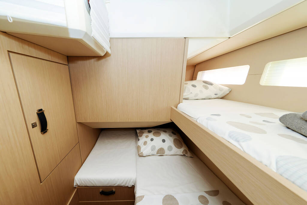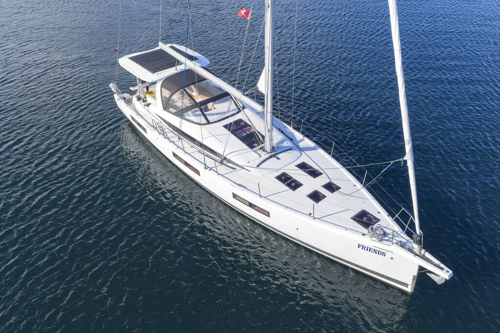 Sailing yacht Jeanneau 60 Friends, built in 2023 is anchored in the Trogir, Yachtclub Seget (Marina Baotić), Split region, Croatia. It has 4 + 1 cabins, can accommodate 9 + 2 people and has 4 + 1 toilets.