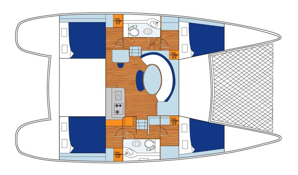 Catamaran Lagoon 380 S2 Thalassaki, built in 2014 is anchored in the Athens, Alimos marina, Athens area/Saronic/Peloponese, Greece. It has 4 cabins, can accommodate 8 + 2 people and has 2 toilets.