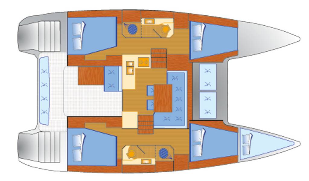 Catamaran Lagoon 40 Balance 69, built in 2019 is anchored in the Marina Frapa, Rogoznica, Šibenik region, Croatia. It has 4 + 1 cabins, can accommodate 8 + 2 + 1 people and has 2 toilets.