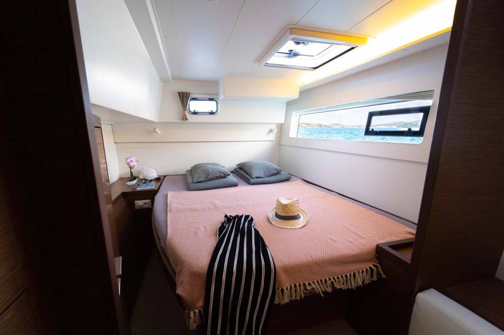 Catamaran Lagoon 40 Millennium Falcon, built in 2019 is anchored in the Marina Mandalina, Sibenik, Šibenik region, Croatia. It has 3 + 2 cabins, can accommodate 6 + 2 + 2 people and has 2 toilets.