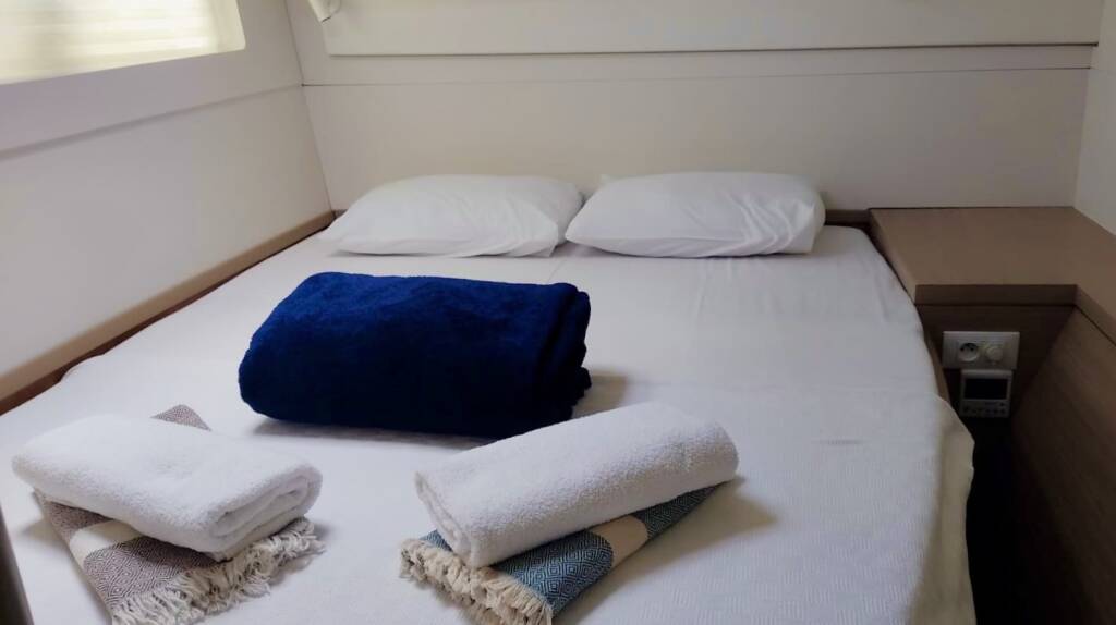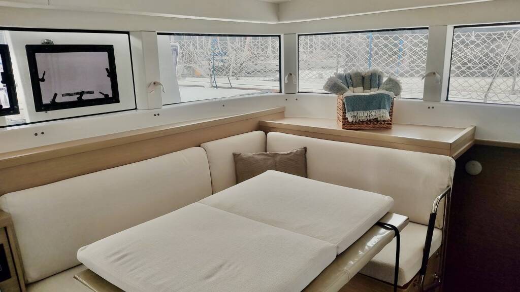 Catamaran Lagoon 40 Sail Sagitta, built in 2023 is anchored in the Fethiye, Ece Saray Marina Resort, Aegean, Turkey. It has 4 + 2 cabins, can accommodate 8 + 2 people and has 4 toilets.