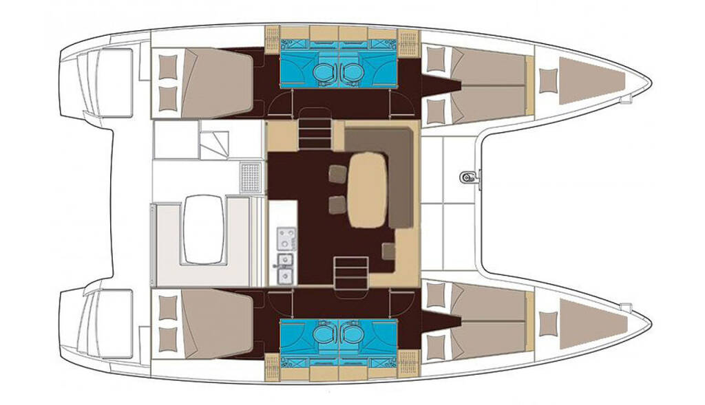 Catamaran Lagoon 400 Jazz Point, built in 2012 is anchored in the ACI Marina Split, Split region, Croatia. It has 4 + 2 cabins, can accommodate 8 + 2 people and has 4 toilets.