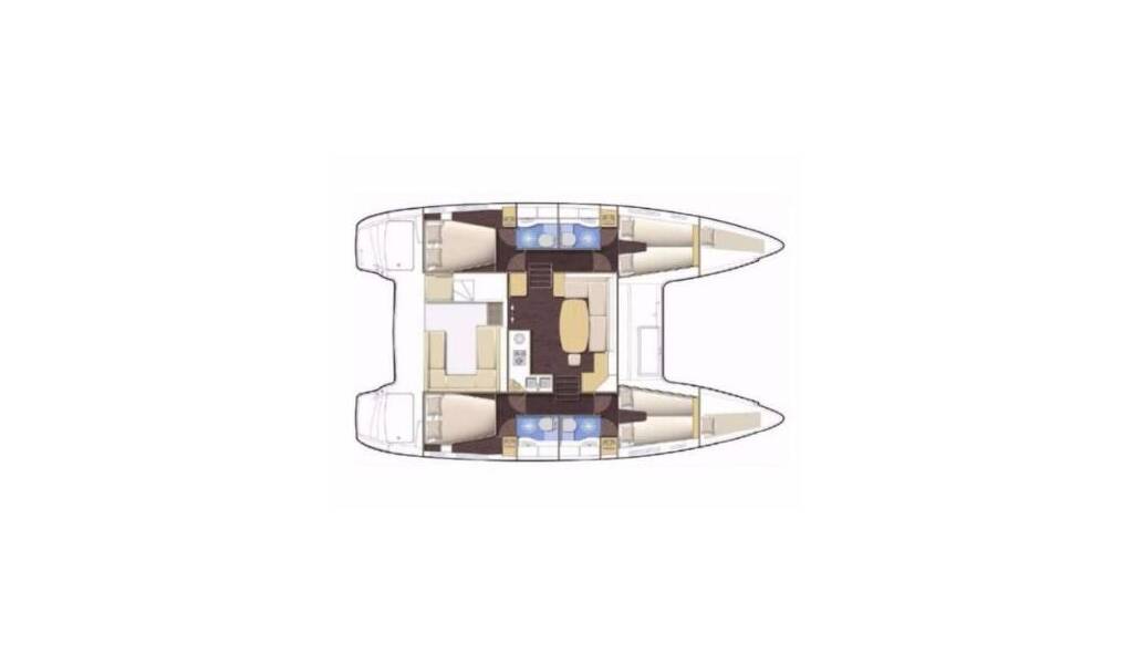 Catamaran Lagoon 400 Pagomo nayan, built in 2012 is anchored in the ACI Marina Trogir, Split region, Croatia. It has 4 + 2 cabins, can accommodate 8 + 2 + 2 people and has 4 toilets.
