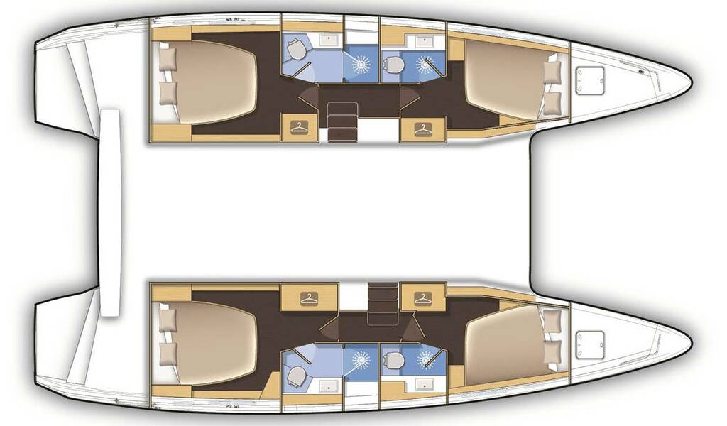Catamaran Lagoon 42 Miss Nastazia, built in 2018 is anchored in the Yacht Club Marina Salamina, Athens area, Athens area/Saronic/Peloponese, Greece. It has 4 + 2 cabins, can accommodate 8 + 2 + 2 people and has 4 + 1 toilets.