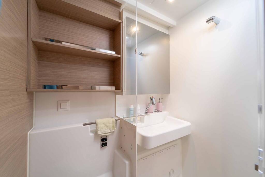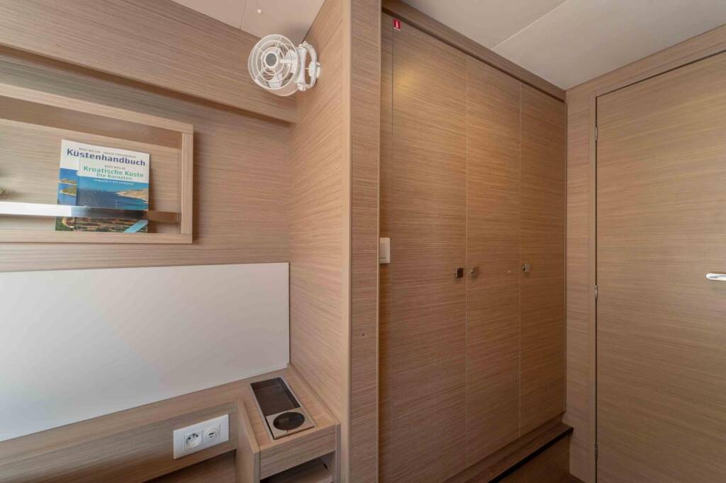 Catamaran Lagoon 43 Lotti, built in 2025 is anchored in the Marina Mandalina, Sibenik, Šibenik region, Croatia. It has 4 + 2 cabins, can accommodate 8 + 2 + 2 people and has 4 toilets.