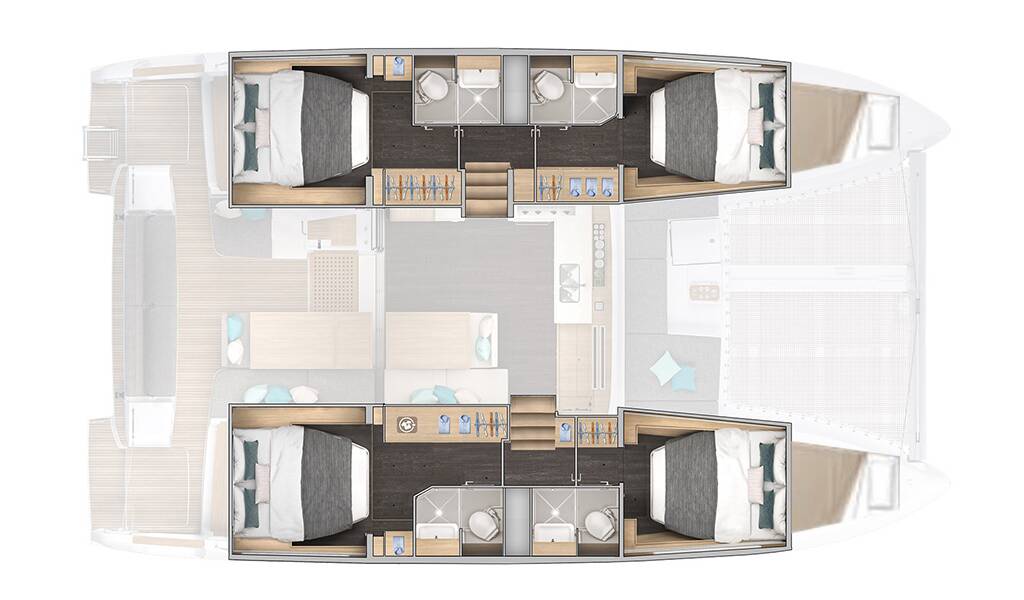 Catamaran Lagoon 43 Sail la vie, built in 2026 is anchored in the Marina Mandalina, Sibenik, Šibenik region, Croatia. It has 4 + 2 cabins, can accommodate 8 + 2 + 2 people and has 4 toilets.