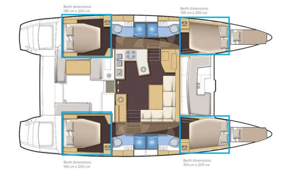 Catamaran Lagoon 450 F Adriatic Cheetah, built in 2018 is anchored in the Marina Kastela, Split region, Croatia. It has 4 + 2 cabins, can accommodate 8 + 2 + 2 people and has 4 toilets.