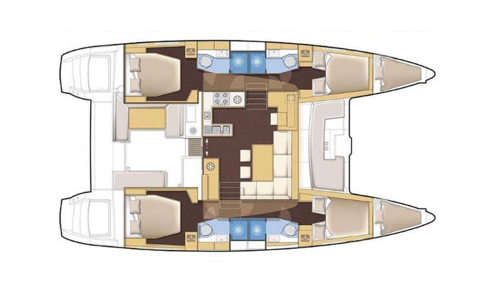 Catamaran Lagoon 450 F Lydia, built in 2015 is anchored in the Trogir, Marina Trogir (ex.SCT), Split region, Croatia. It has 4 + 2 cabins, can accommodate 8 + 2 + 2 people and has 4 toilets.