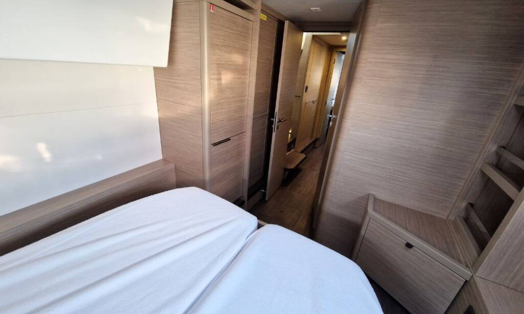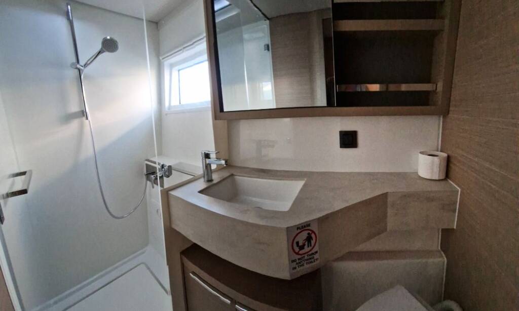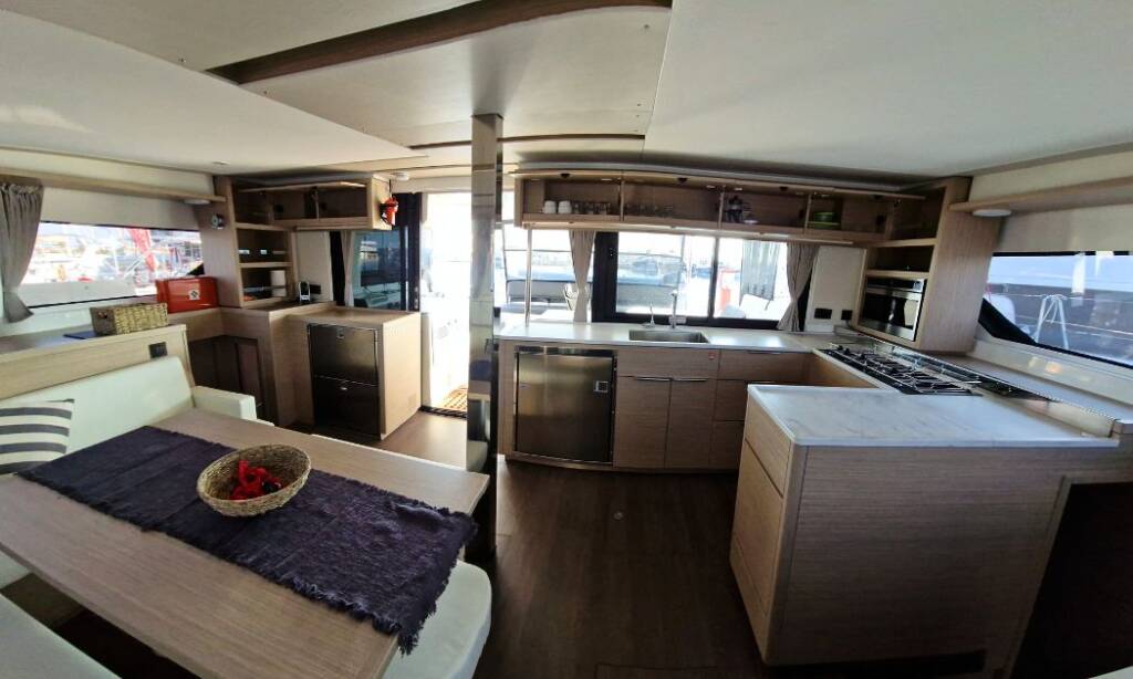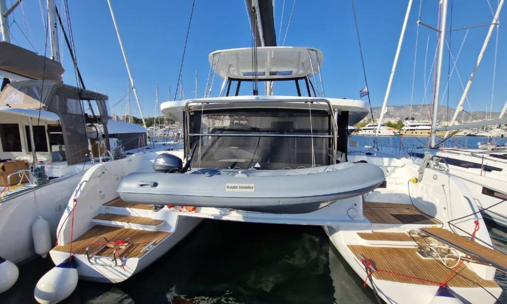 Catamaran Lagoon 46 Celena VI, built in 2023 is anchored in the Kos, Kos Marina, Dodecanese, Greece. It has 4 + 2 cabins, can accommodate 8 + 2 + 2 people and has 4 + 2 toilets.