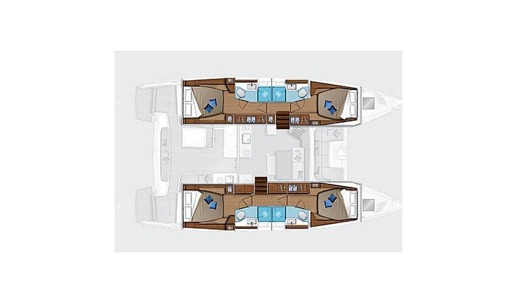 Catamaran Lagoon 46 Espabila, built in 2021 is anchored in the Skiathos, Skiathos/Sporades, Volos, Greece. It has 4 + 2 cabins, can accommodate 8 + 1 + 2 people and has 4 + 1 toilets.