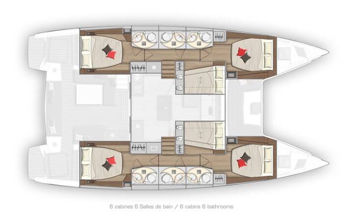 Catamaran Lagoon 50 Aeolian Myth, built in 2019 is anchored in the Preveza Marina, Ionian Islands, Greece. It has 6 + 2 cabins, can accommodate 10 + 2 people and has 6 + 2 toilets.