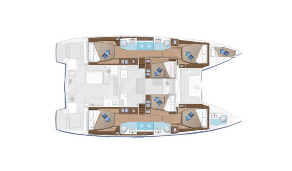 Catamaran Lagoon 50 Badi, built in 2020 is anchored in the Marina Kastela, Split region, Croatia. It has 6 + 1 cabins, can accommodate 8 + 2 + 1 people and has 4 toilets.