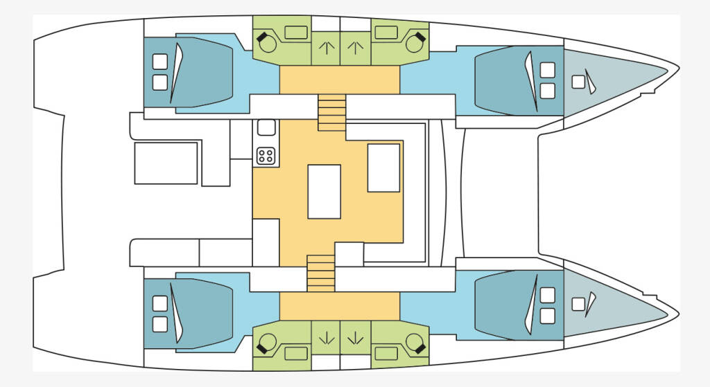 + provisioning, Crew on board must have their own toilets/ showers. If either a skipper or a hostess/cook is on board, 1 double cabin will be required for him/her. If both a skipper and a hostess/cook are on board, 1 double cabin and 1 forepeak cabin will be required for them. Exceptions exists for specific layouts, Sales Agents will provide more details about the different boat models - Payable now