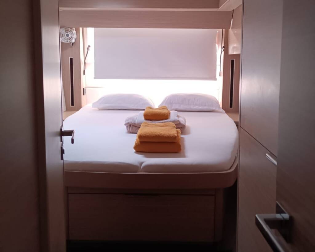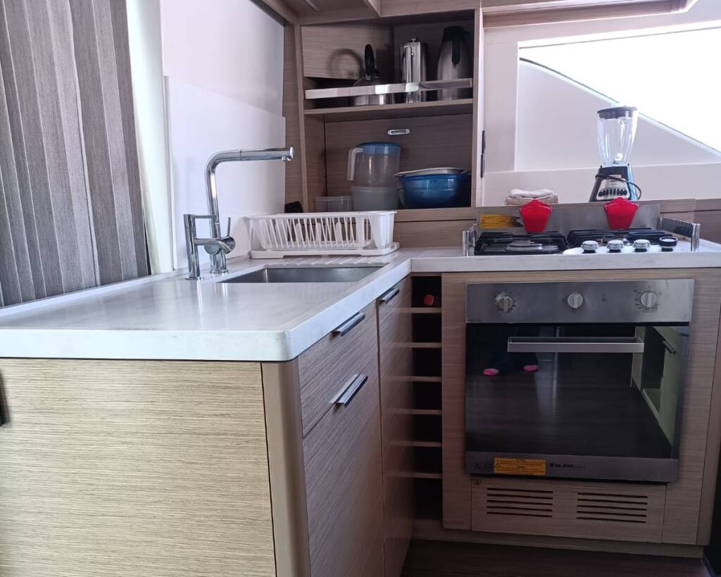 Catamaran Lagoon 51 SEA BEAR, built in 2023 is anchored in the La Paz, Costa Baja Marina, Baja California Sur, Mexico. It has 6 + 2 cabins, can accommodate 12 + 2 people and has 4 toilets.