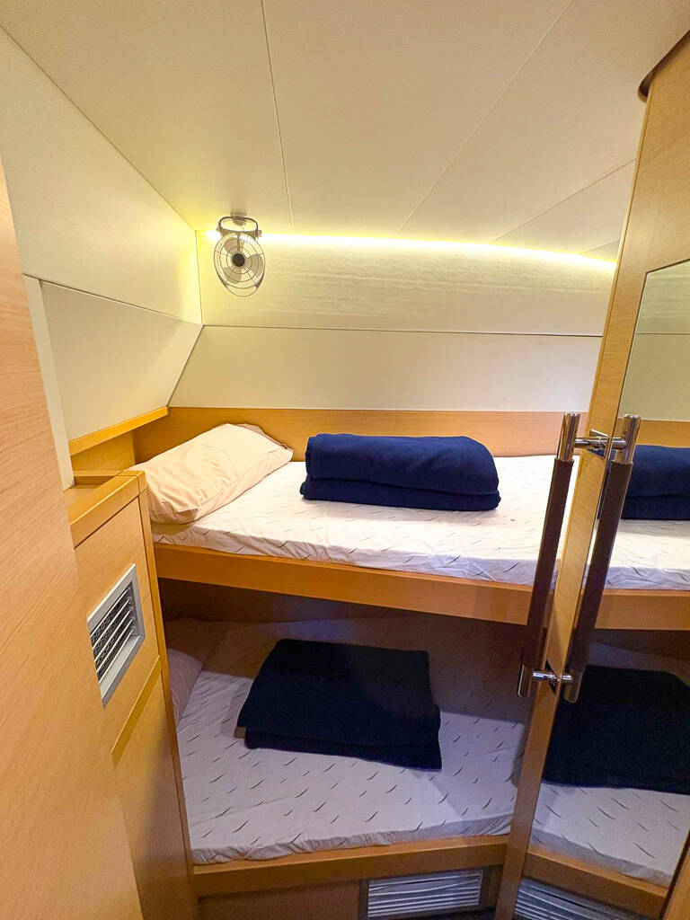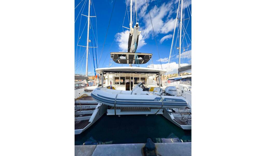Catamaran Lagoon 52 F La Dolce Vita, built in 2017 is anchored in the Marina Pirovac, Šibenik region, Croatia. It has 5 + 2 cabins, can accommodate 10 + 2 people and has 5 toilets.