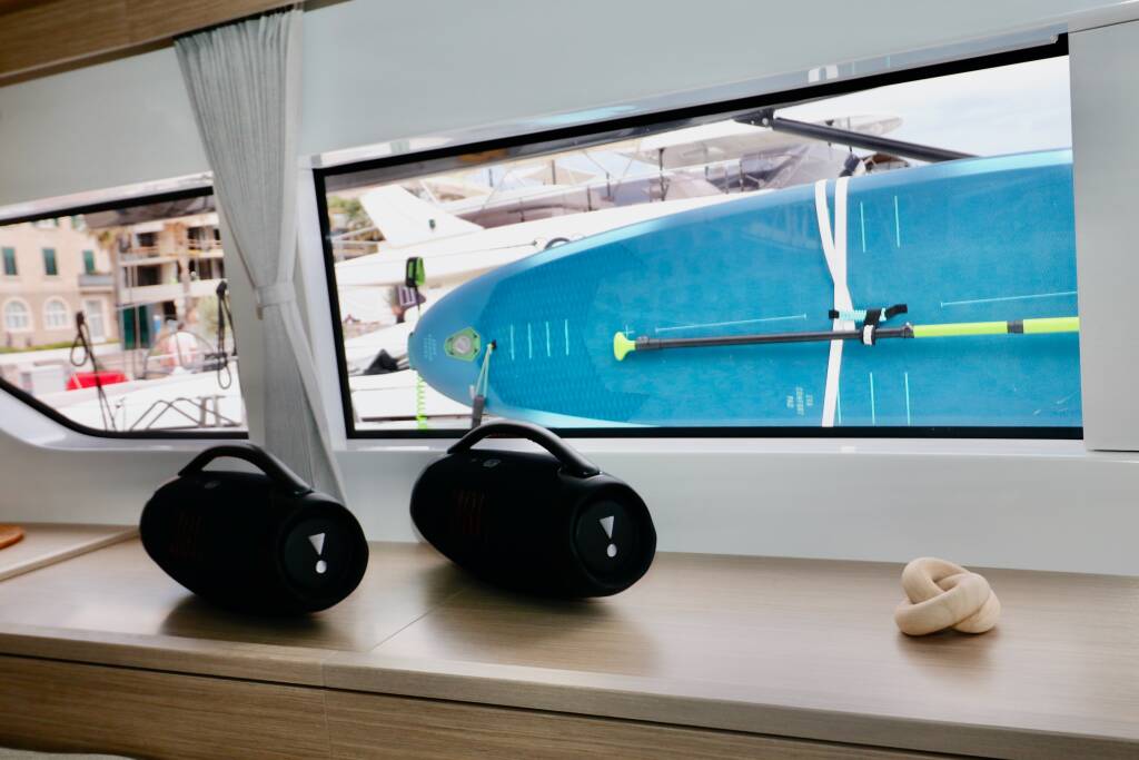 • 3 crew members (CAPTAIN, STEWARDESS and CHEF) • Water toys & equipment: fishing gear, kneeboard, JOBE infinity sea scooter, tender Highfield 460 & Honda 60 HP, snorkeling gear, 2 x Stand-up paddle boards, Rogue Echo Bike, TRX suspension system, exclusive Pilates accessories • WI-FI (1 TB weekly) • The Finest coffee types • Daily preparation of breakfast , lunch and dinner • 13% VAT • Mooring fee for the first and the last day of charter