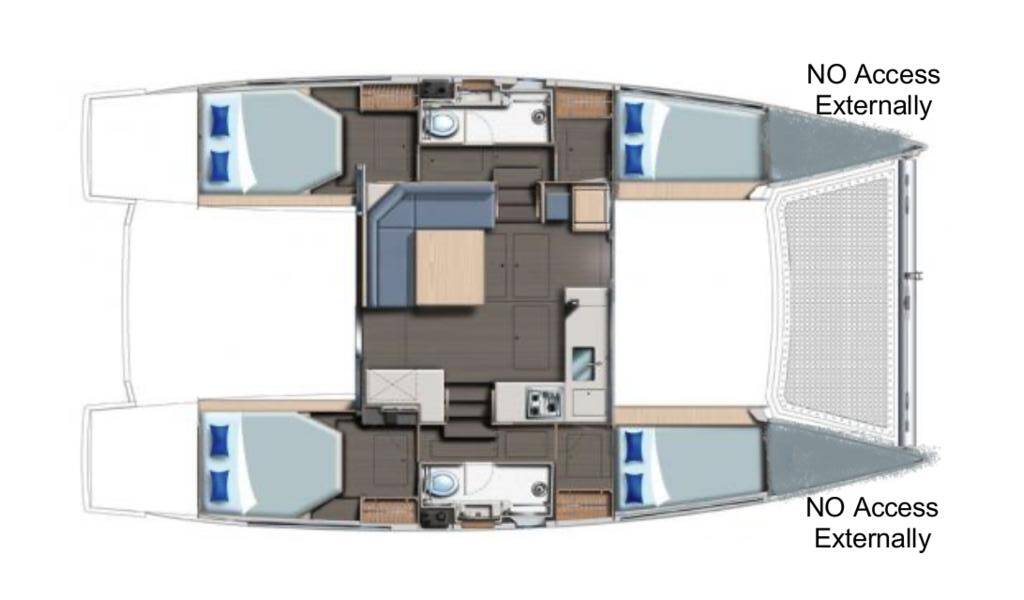 Catamaran Leopard 40 Annemarie, built in 2018 is anchored in the Sicily, Portorosa, Sicily, Italy. It has 4 cabins, can accommodate 8 + 2 people and has 2 toilets.
