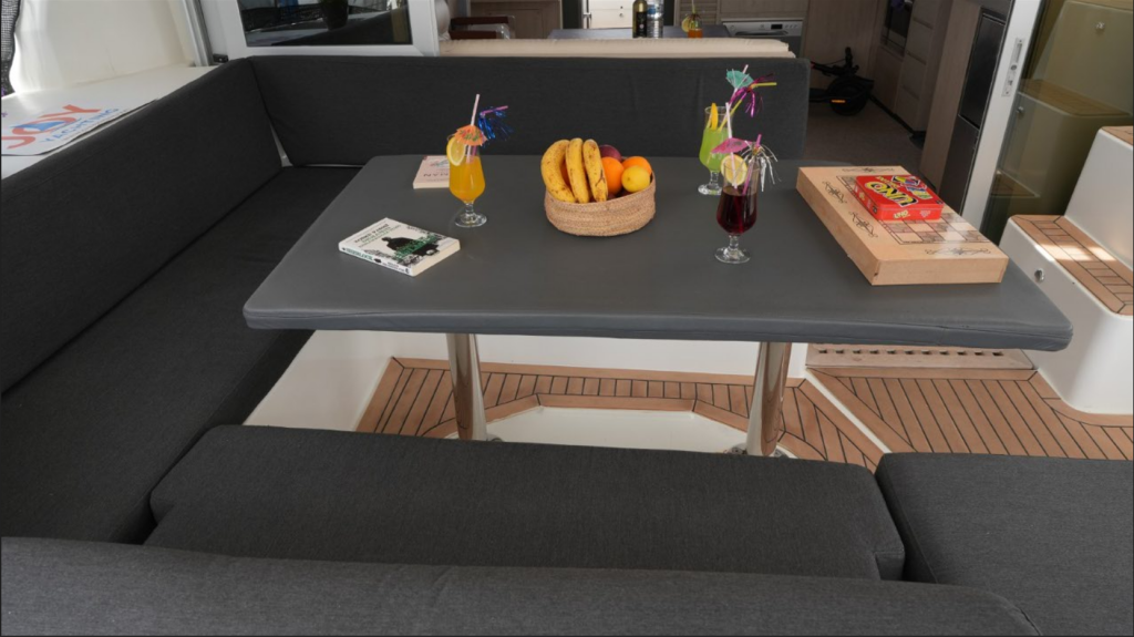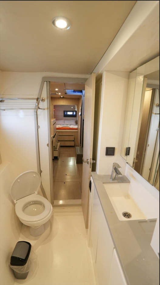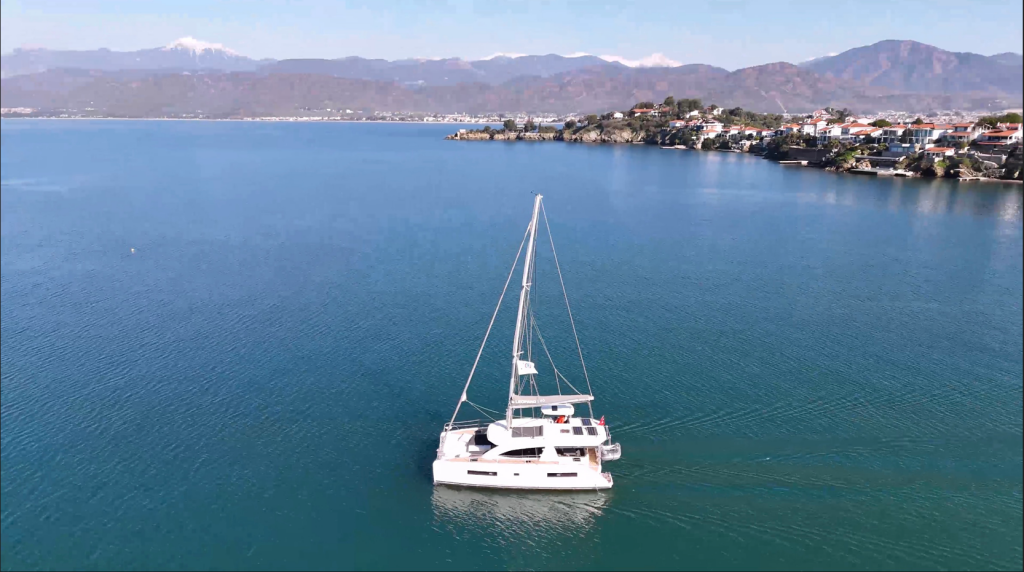 Catamaran Leopard 40 Panda Joy, built in 2016 is anchored in the Fethiye, Ece Saray Marina Resort, Aegean, Turkey. It has 3 cabins, can accommodate 6 + 2 people and has 2 toilets.