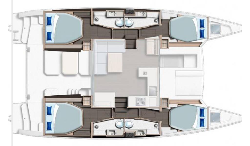 Catamaran Leopard 42 Orpin, built in 2024 is anchored in the Sicily, Portorosa, Sicily, Italy. It has 4 cabins, can accommodate 8 + 2 people and has 4 toilets.