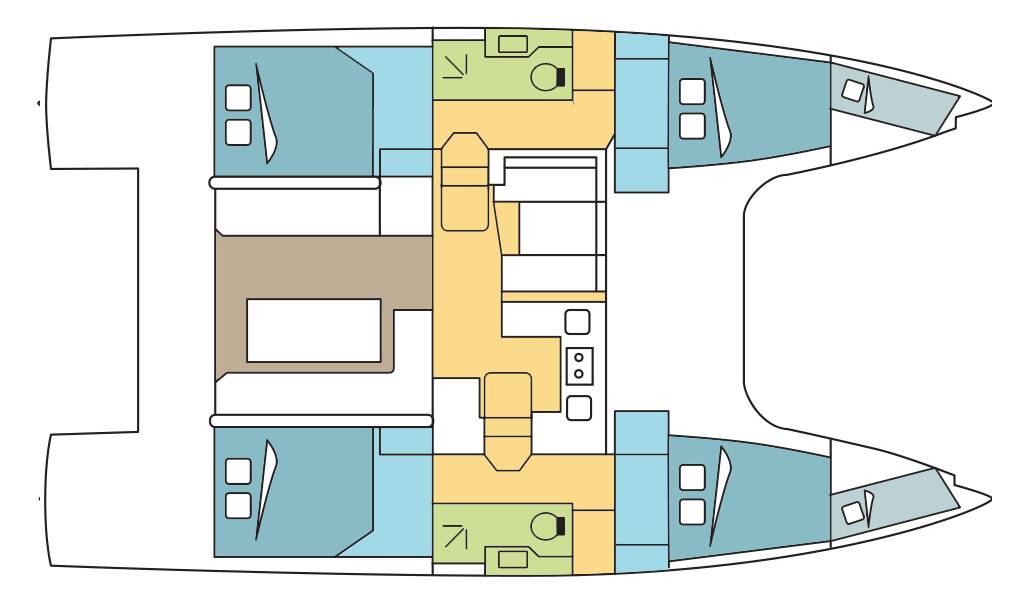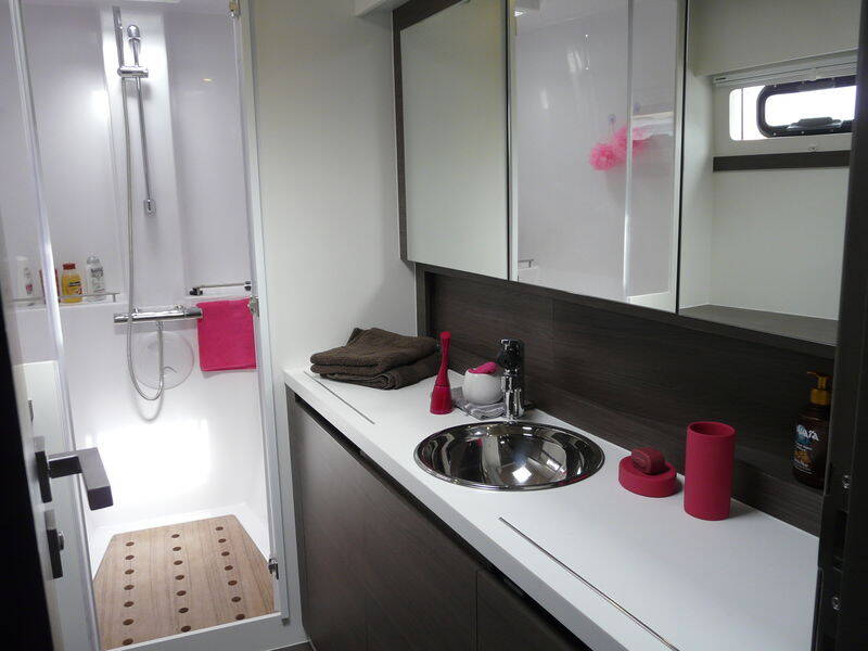 Catamaran Nautitech 40 Open LOU ROUSTIDOU, built in 2022 is anchored in the St. Martin, Marina de L'Anse Marcel, St. Martin, Caribbean. It has 4 + 2 cabins, can accommodate 8 + 1 + 2 people and has 2 toilets.