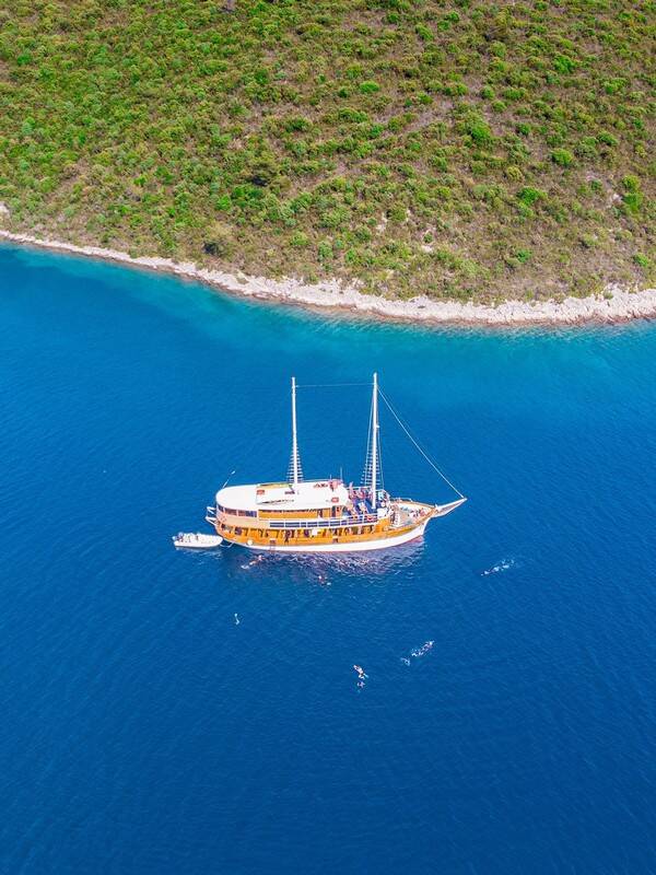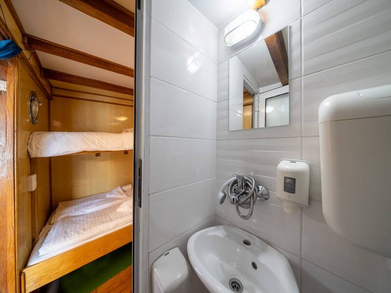 The traditional wooden ship Novi Dan preserves its authentic charm while offering modern comfort. Measuring 27 meters in length and 7.60 meters in width, this elegant two-masted vessel cruises at a relaxed speed of 8 nautical miles, providing a perfect setting for a unique sailing experience. Novi Dan accommodates up to 23 guests across 12 comfortable cabins. Nine cabins feature a double bed with an additional bunk bed, two cabins have double beds, and one cabin is equipped with a single bed. Each cabin includes a private bathroom with a shower and toilet, as well as air conditioning, ensuring a pleasant stay on board. The main deck offers a welcoming dining area and salon, complemented by a fully equipped bar and attentive, friendly staff available to guests every evening from 7:00 pm to midnight. Above, the spacious sun deck offers an ideal place to relax, soak up the sun during the day, or sleep under the stars at night. A professional crew of five — captain, cook, sailor, and two waiters/waitresses — is dedicated to delivering exceptional service and meeting every guest’s needs. Cruise routes and destinations can be tailored to your preferences in coordination with the captain, allowing for a fully personalized sailing experience aboard Novi Dan.