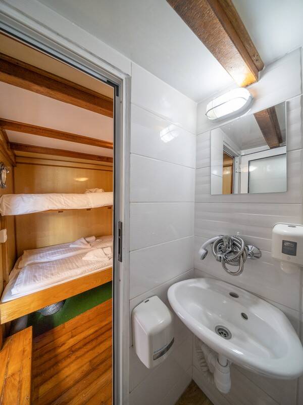 9 en-suite double cabins with a bed (140*190 cm) plus an additional bunk bed (80*190)