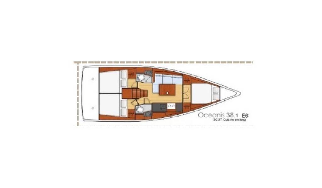 Sailing yacht Oceanis 38.1 Elisa, built in 2018 is anchored in the Lefkas, D-Marin, Ionian Islands, Greece. It has 3 cabins, can accommodate 6 + 2 people and has 2 toilets.