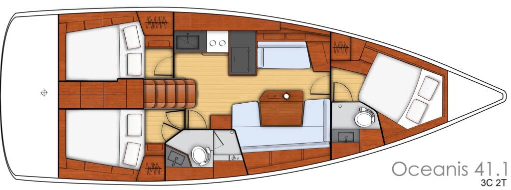 Sailing yacht Oceanis 41.1 Luxa, built in 2019 is anchored in the ACI Marina Split, Split region, Croatia. It has 3 cabins, can accommodate 6 + 2 people and has 2 toilets.