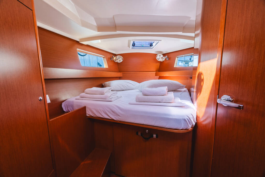 Sailing yacht Oceanis 41.1 Peace, built in 2018 is anchored in the Lefkas main port, Ionian Islands, Greece. It has 3 cabins, can accommodate 6 + 1 people and has 2 toilets.