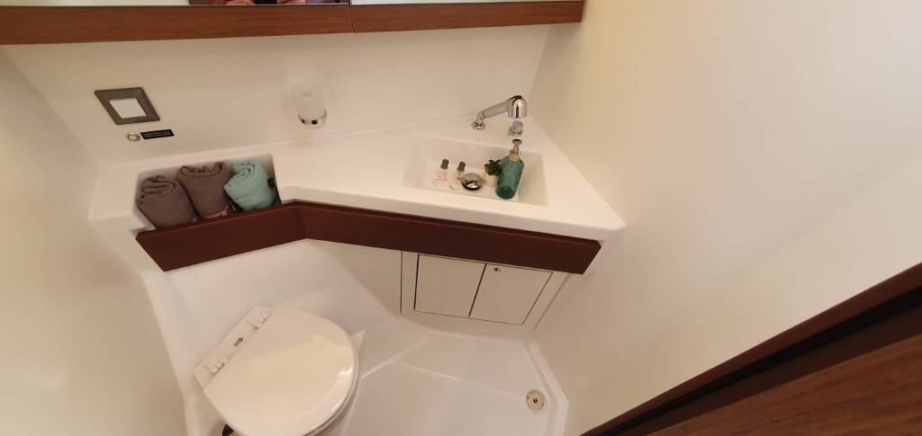 Sailing yacht Oceanis 46.1 Dommie, built in 2024 is anchored in the ACI Marina Split, Split region, Croatia. It has 5 cabins, can accommodate 10 + 2 people and has 3 toilets.