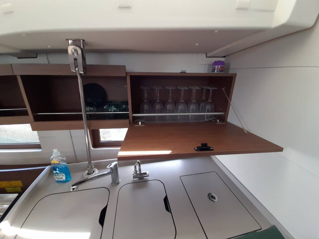 Sailing yacht Oceanis 46.1 Okiroi, built in 2020 is anchored in the Lefkas, D-Marin, Ionian Islands, Greece. It has 5 cabins, can accommodate 10 people and has 3 toilets.
