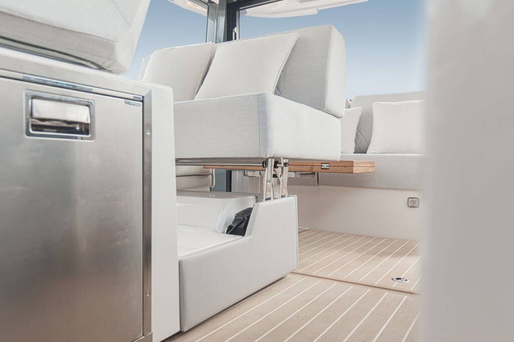 Motor yacht Saxdor 400 GTO Blade, built in 2025 is anchored in the Sukosan, D-Marin Dalmacija Marina, Zadar region, Croatia. It has 2 cabins, can accommodate 4 + 2 people and has 1 toilets.