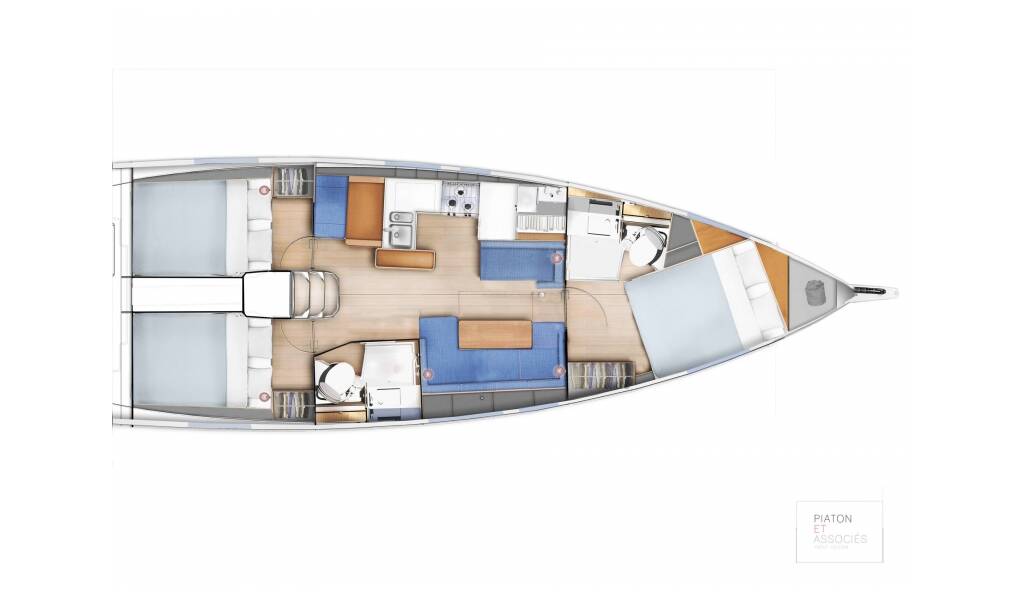Sailing yacht Sun Odyssey 410 Signum Bravo, built in 2019 is anchored in the Dubrovnik, Komolac, ACI Marina Dubrovnik, Dubrovnik region, Croatia. It has 3 cabins, can accommodate 6 + 2 people and has 2 toilets.