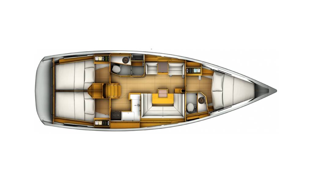 Sailing yacht Sun Odyssey 419 Euros, built in 2019 is anchored in the Dubrovnik, Komolac, ACI Marina Dubrovnik, Dubrovnik region, Croatia. It has 3 cabins, can accommodate 6 + 2 people and has 2 toilets.