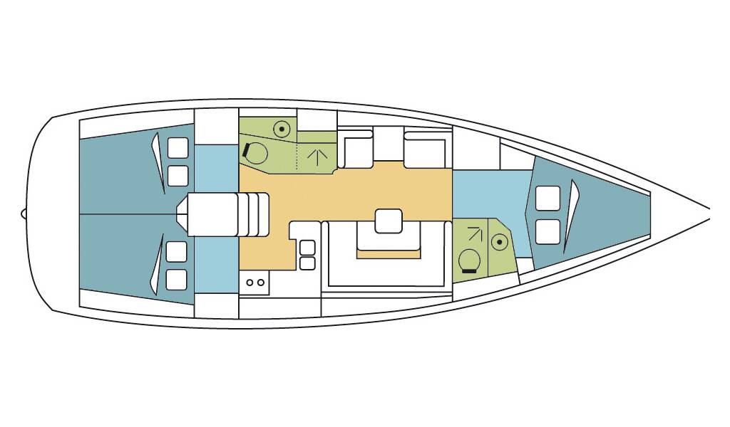 Sailing yacht Sun Odyssey 419 VUILLARD, built in 2019 is anchored in the St. Martin, Marina de L'Anse Marcel, St. Martin, Caribbean. It has 3 cabins, can accommodate 6 + 2 people and has 2 toilets.