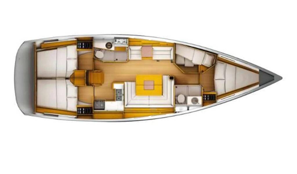 Sailing yacht Sun Odyssey 449 Mientras Tanto, built in 2016 is anchored in the Ibiza, Club Nàutic Sant Antoni de Portmany, Balearic Islands, Spain. It has 4 cabins, can accommodate 8 + 2 people and has 2 toilets.