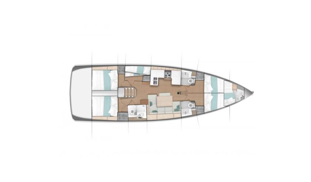 Sailing yacht Sun Odyssey 490 Hrvaska, built in 2019 is anchored in the Marina Kastela, Split region, Croatia. It has 5 cabins, can accommodate 10 people and has 3 toilets.
